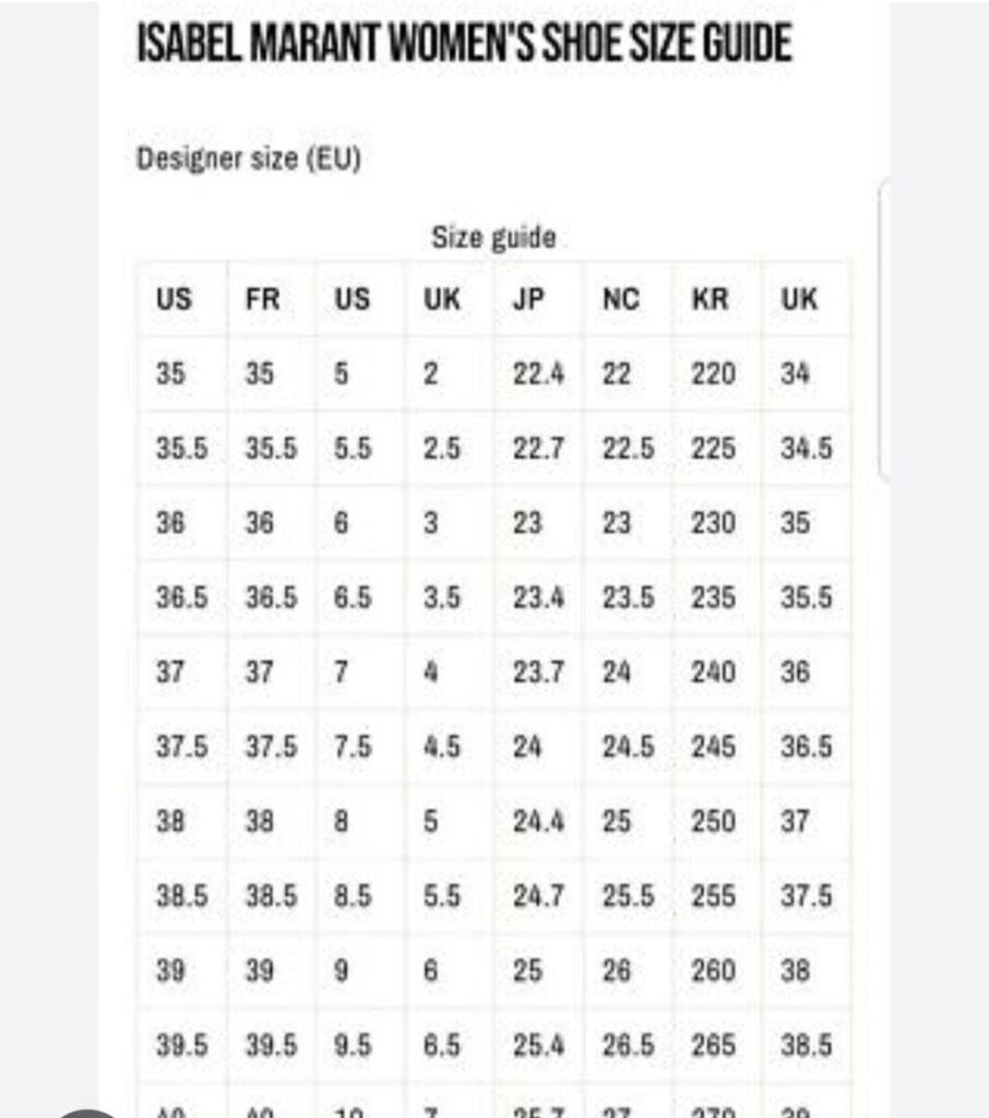 Opdag den perfekte pasform med vores Isabel Marant størrelsesguide. Find din ideelle størrelse og shop ubekymret. Gør din shoppingoplevelse lettere og bekvem nu!